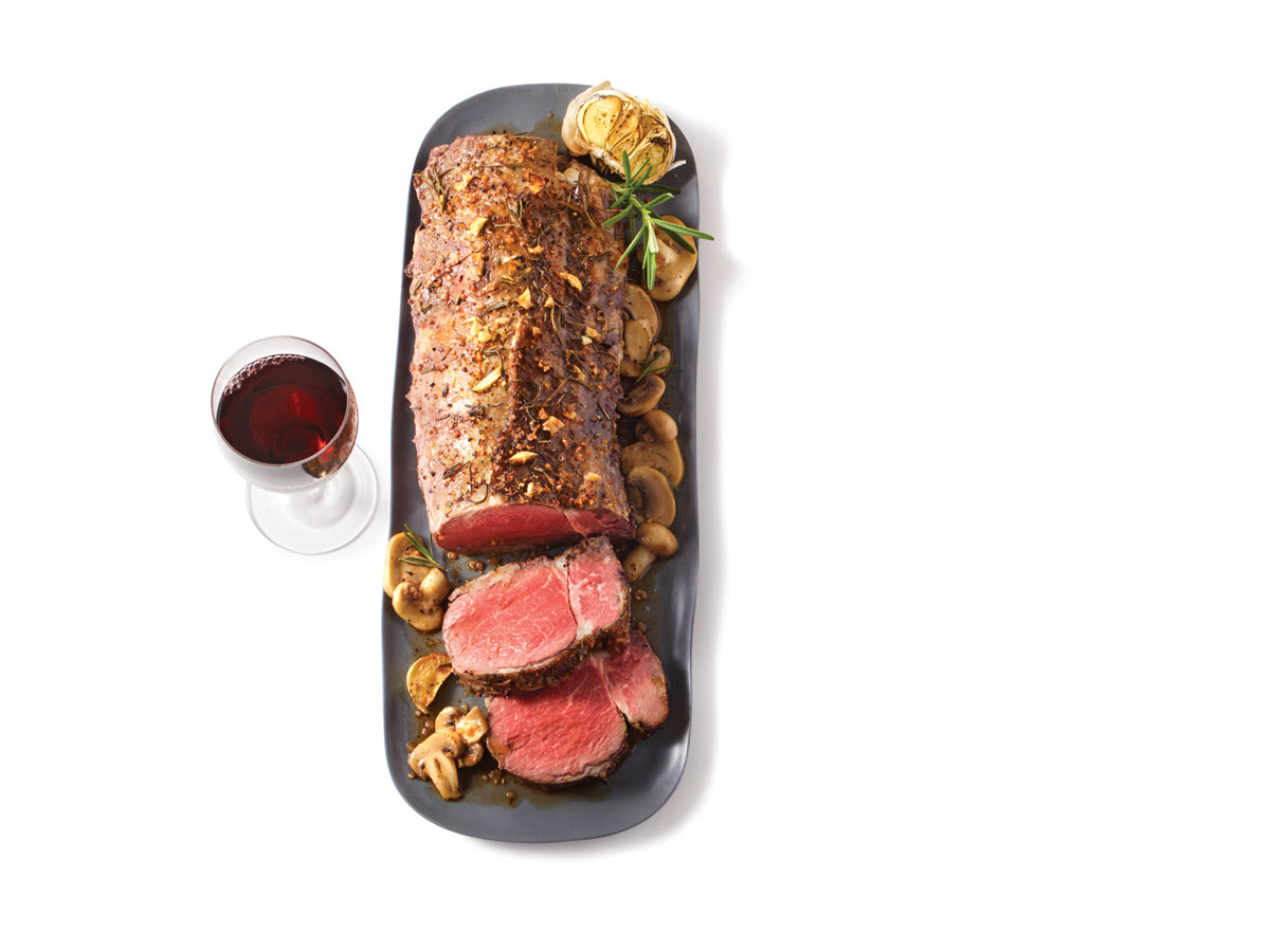 Beef Tenderloin with Mushroom Sauce with Roasted Brussels Sprouts & Fingerling Potatoes | Recipe ... from i.pinimg.com · this roast beef tenderloin looks glamorous and tastes amazing, yet it's practically foolproof. Top slices of beef tenderloin with a rich sauce of cremini mushrooms and sweet red wine. Spread mustard on roast then sprinkle with reserved mushroom powder, salt and pepper. Place whole tenderloin on broiler pan and cover. Simmer uncovered 35 to 40 minutes, stirring occasionally, until sauce is slightly. Coat a roasting pan and rack with nonstick spray. Blue cheese beef tenderloin, cynthia's grilled beef tenderloin, peppercorn beef tenderloin, etc. Beef tenderloin gets a big boost of fresh and earthy flavor from a spinach and mushroom stuffing, complemented by a hint of garlicky heat.